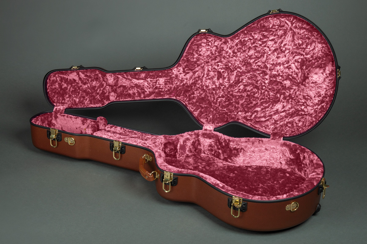 Calton Case interiors are custom cut to the specific model. The protective foam and velvet interior hug the contour of the guitar body.