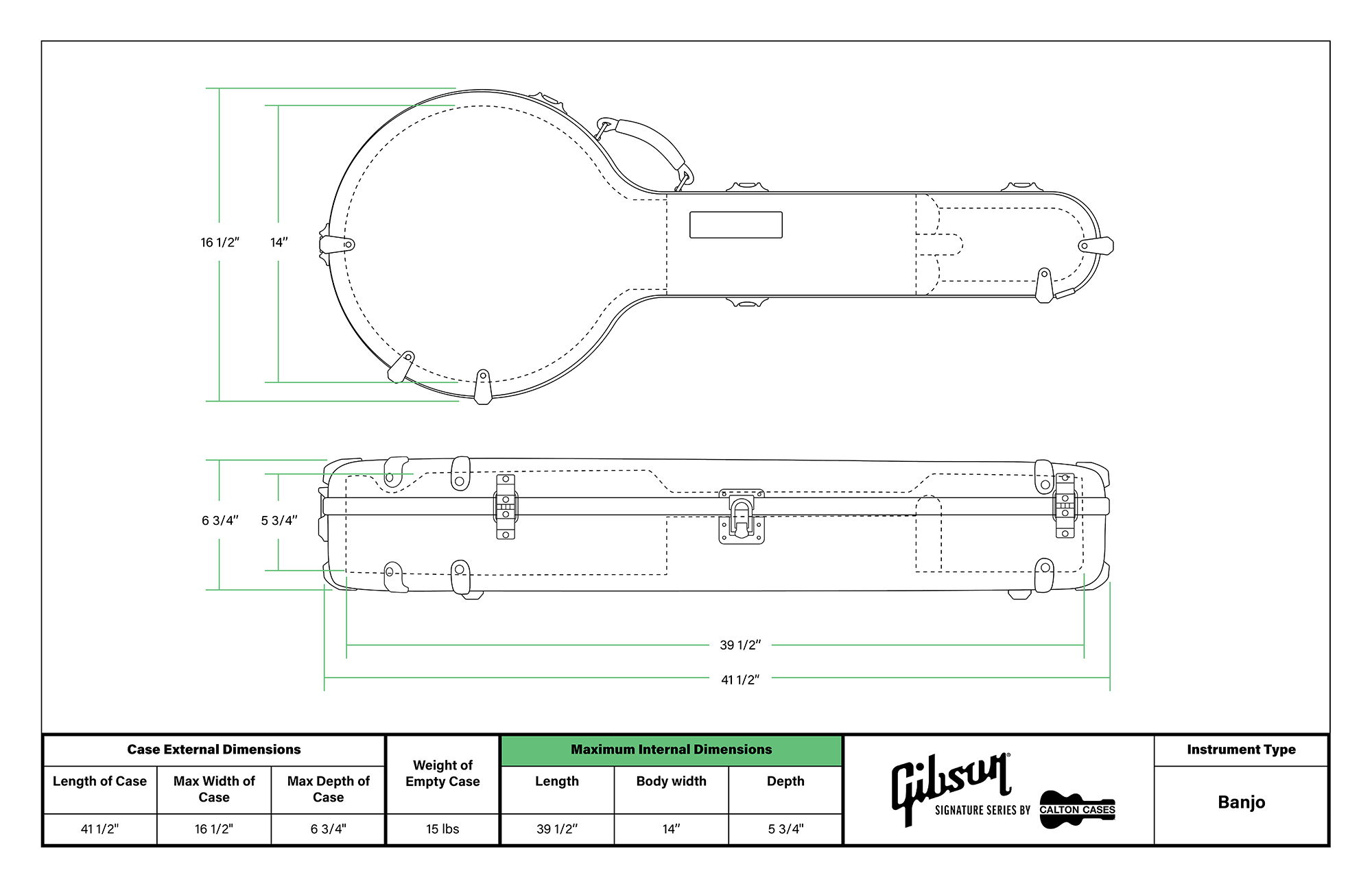 Note: Cases for tenor banjos will be made the same length as a standard banjo case.