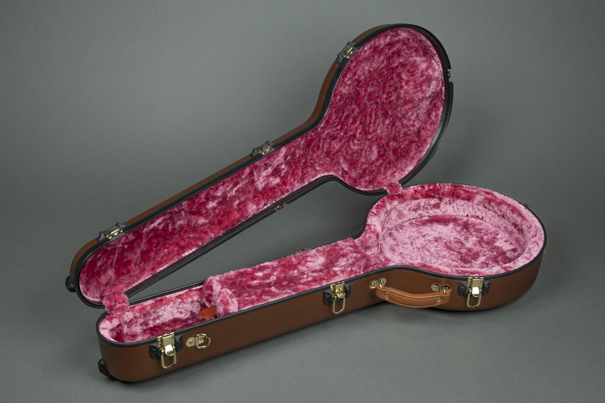 Our banjo case fits up to a 13 ¾” pot and an overall length of 38 ½”. The hard shell flight case consists of multiple layers of fiberglass and soft urethane foam padding that is cut to perfectly contour to your instrument resulting in a "glove-like fit. The interior fully supports your instrument and is wrapped in our premium plush velvet. The padded pick box and neck guide help to firmly secure your instrument in place as well as suspending the headstock in the case, keeping it and any tuning pegs from coming into contact with the lid or side walls. These features, along with low density foam wedge pads that secure the neck and body when the lid is closed, result in a level of protection that has been unmatched since 1969.