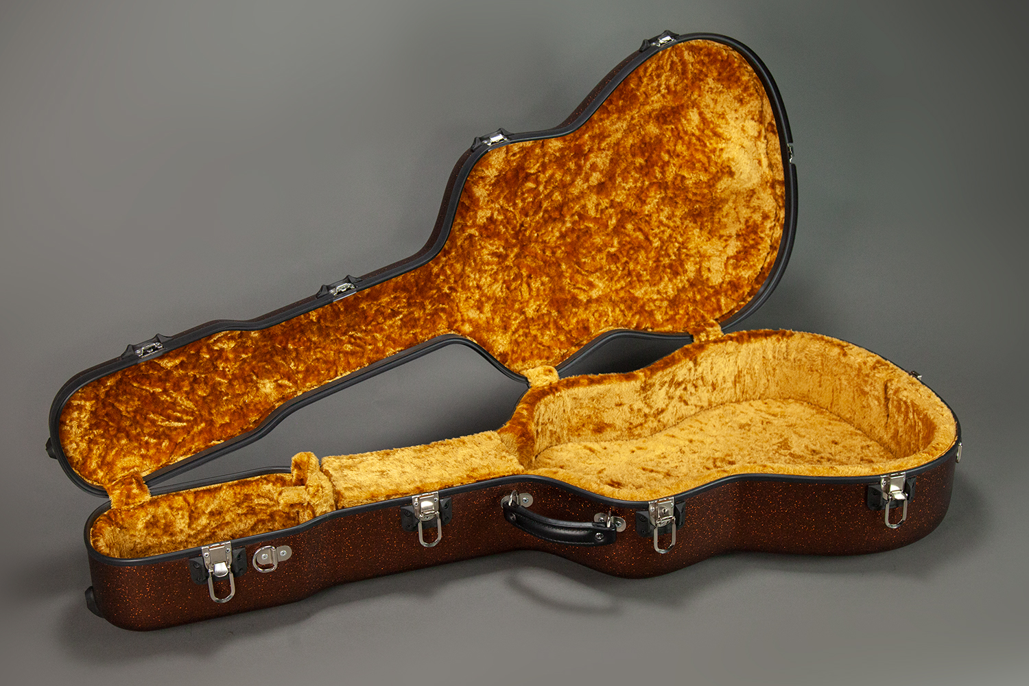 Calton Case interiors are custom cut to the specific model. The protective foam and velvet interior hug the contour of the guitar body.