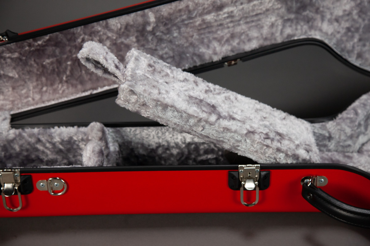 - Neck guide suspends headstock in case